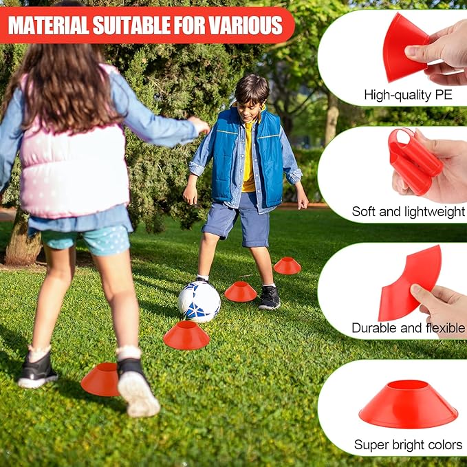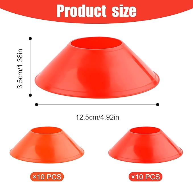 - Package Content: You will receive 20 pieces of soccer cones for training, in 2 colors: red and orange, 10 of each color. Sufficient quantity to meet your daily sports training needs. They're perfect for kids, adults, beginners and professionals.