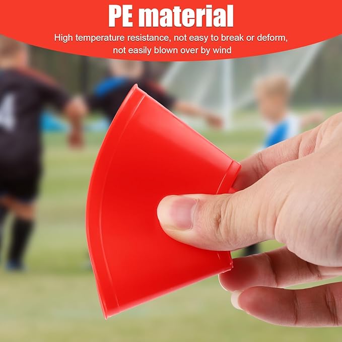 - Reliable Material: The training cones are made of premium PE material, reliable and long-lasting, high temperature resistant, not easy to break or deform. They can be placed stably on different surfaces, providing you with a good using experience.