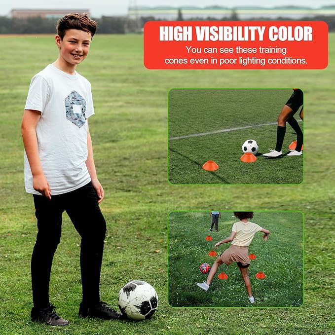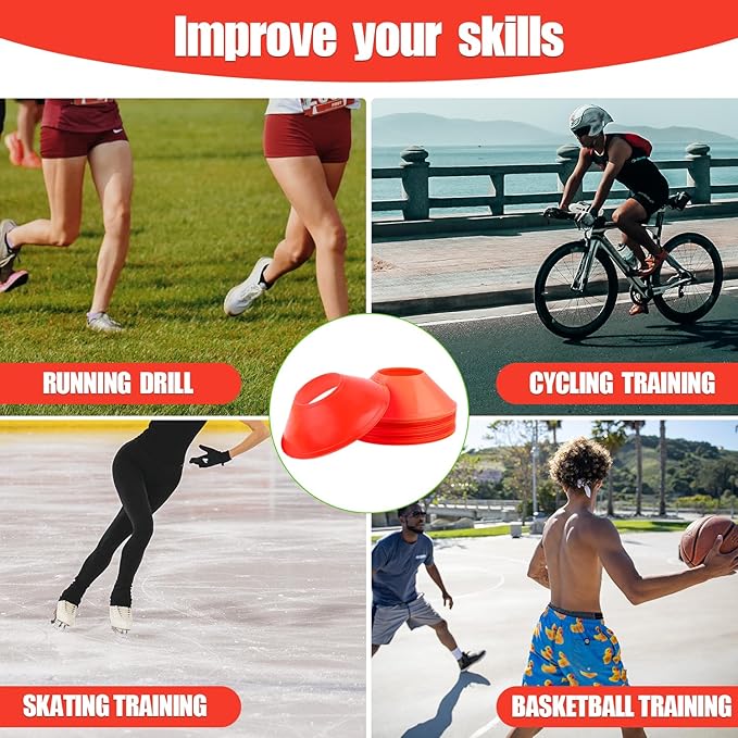 - Wide Application: These agility cones are perfect for a variety of indoor and outdoor trainings and games. They're ideal for marking boundaries or setting up drills for sporting events, football, basketball, remote control racing car, roller skating drills and more.
