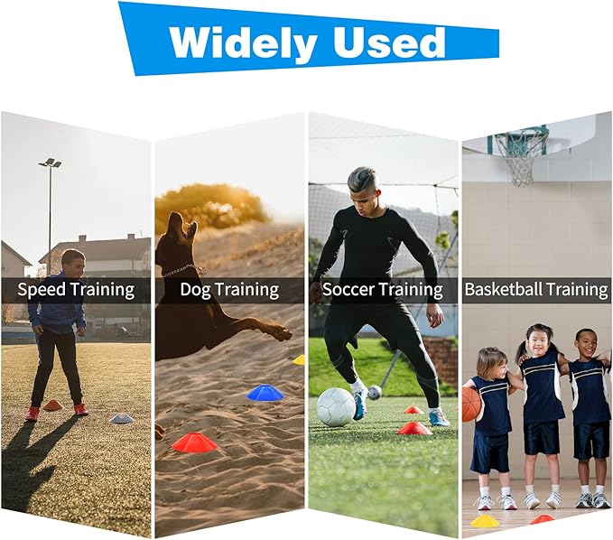 - 【Wide Application】- This soccer training cone set can be used in units, organizations large events, residential parking, etc. It is suitable for sports and other activities like soccer, rugby, basketball, games for parties and events, bicycle obstacle courses, motorcycle training, dog or horse training, etc.