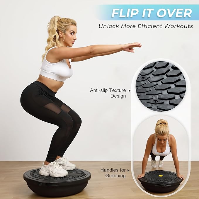 - πππππππ ππππππ: Our balance ball has a large 25-inch size with a textured design base and two recessed handles on the bottom of the platform. It is sturdy and larger than the normal size, ensuring you a safer and more comfortable workout experience.