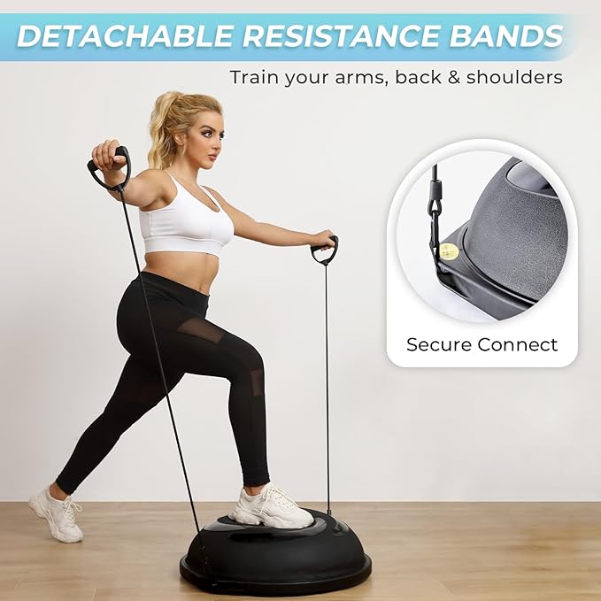 - π ππππππππππ πππππ: Two detachable resistance bands are included to modify and intensify your workouts. These bands feature wide cushioned grips for comfort and are designed to tone and strengthen your arms, shoulders, back, and abs while minimizing vibration and hand discomfort.