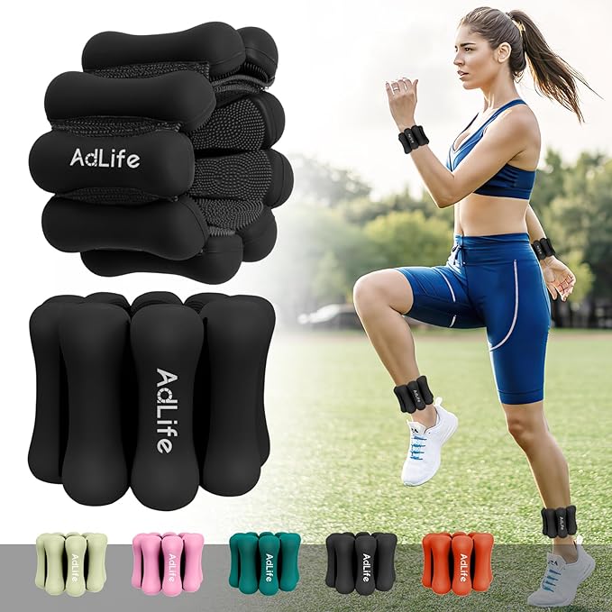 - [Perfect for Any Workout] Enhance muscle resistance and fat burning with ADLIFE silicone wrist and ankle weights. Ideal for fitness, yoga, Pilates, Barre, running, swimming, travel, indoor or outdoor workouts, these weighted wristbands provide hands-free resistance to elevate your workouts.