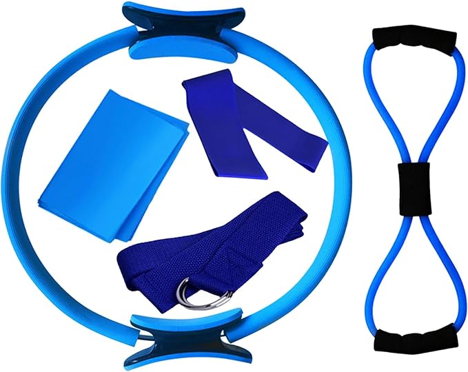 - PRODUCTS INCLUDED: Pilates ring, latex elastic band, yoga rally strap, pull rope, 8-shaped resistance bands for arms.