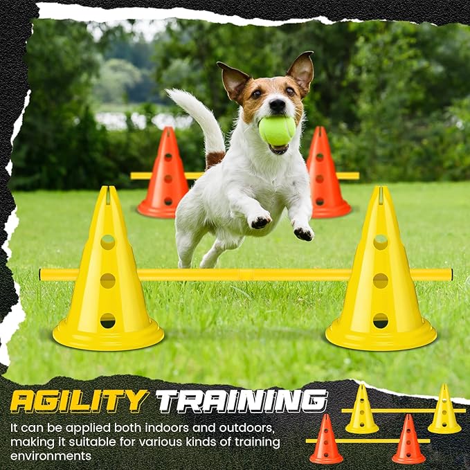 - Package Includes: you will get 6 lightweight agility hurdle sets, including 12 pcs agility training cones and 6 pcs agility training rods; Rich combinations can help your dog improve agility and speed more quickly and effectively