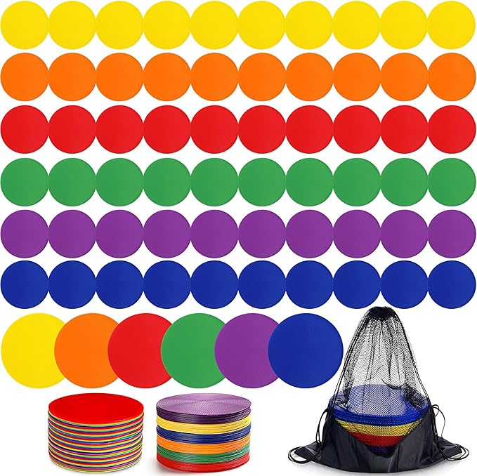 - Easy to Spot: with 6 vibrant colors, including including red, orange, yellow, green, blue and purple, these floor markers for classroom are suitable for schools, recreation centers, agility courses, group exercises, or gym classes; Floor spots allow you to quickly spot what you need without any confusion or hassle