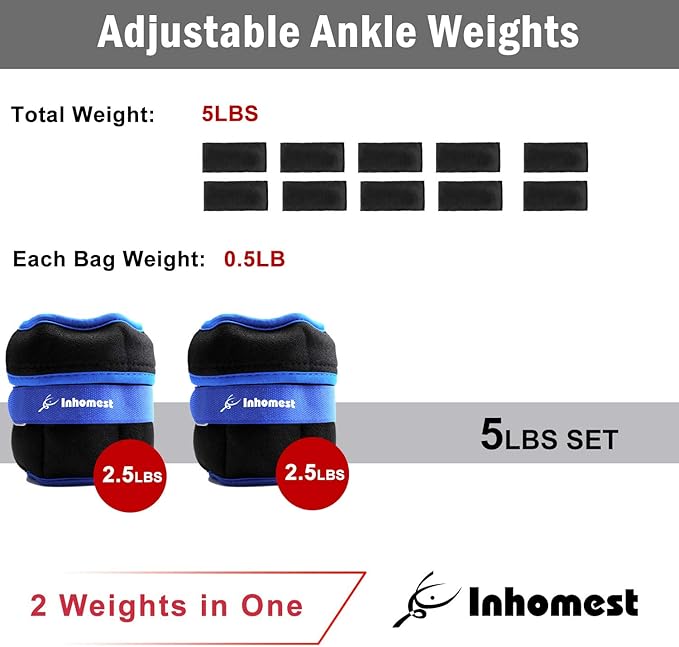 - Adjustable weight with removable weights: 5 individual sandbags in each pack, each bag weighs 0.5 lbs, total weights can be adjusted from 1-5 lbs PAIR for increased resistance. Allowing you to comfortably build muscle and tone your legs whether you are a starter or pro, women, men or kids.