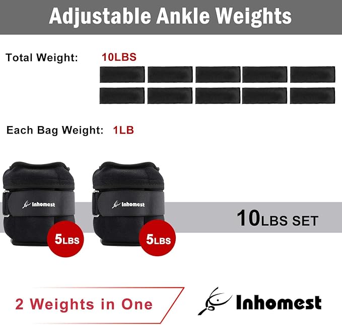 - Adjustable weight with removable weights: 5 individual sandbags in each pack, each bag weighs 1 lbs, total weights can be adjusted from 1-10 lbs PAIR for increased resistance. Allowing you to comfortably build muscle and tone your legs whether you are a starter or pro, women, men or kids.