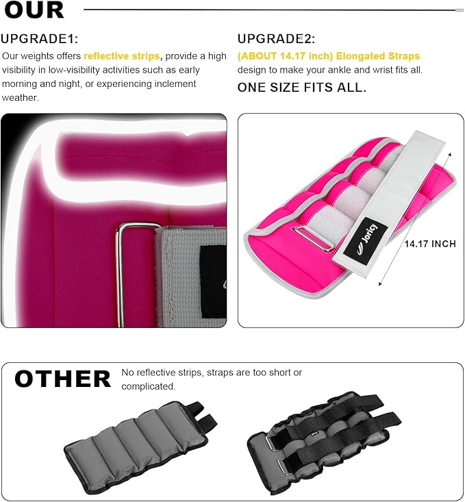 - [UPGRADE Feature 1]: Our ankle weights for women 5lbs each offers reflective strips details across the surroundings. Providing you a high visibility in low-visibility scenes and activities such as early morning and night, or experiencing inclement weather.