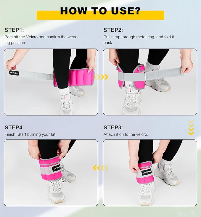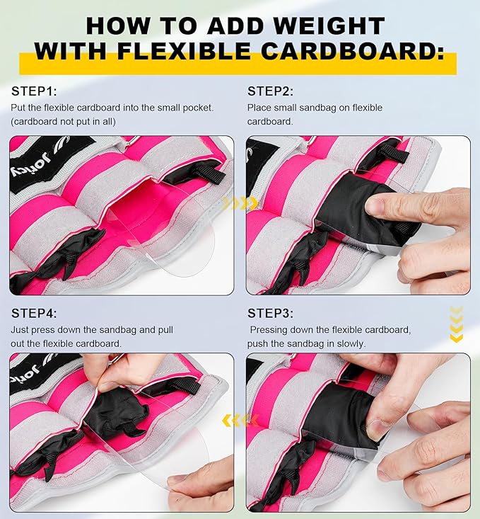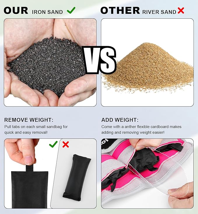 - [UPGRADE Feature 2]: (REMOVE WEIGHT)Our10 lb ankle weights for women with pull tabs on each small sandbag for quick and easy removal! (ADD WEIGHT)Come with a anther flexible cardboard makes adding and removing weight easier!