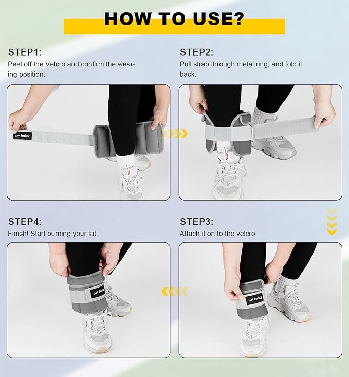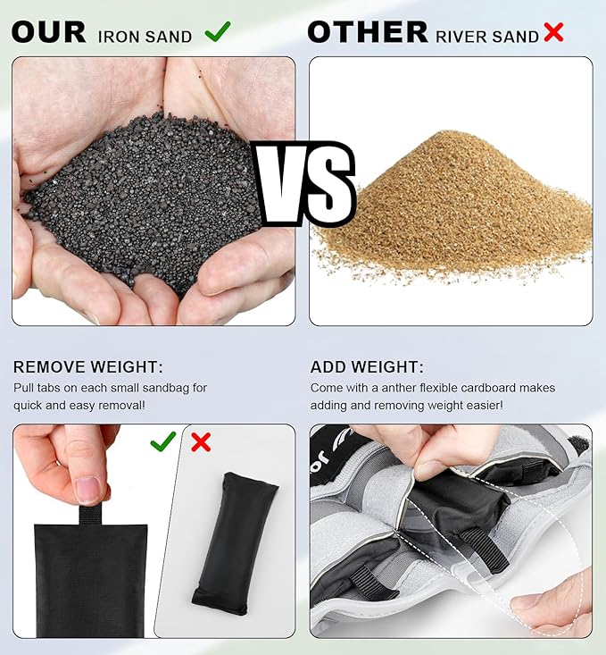 - [UPGRADE Feature 2]: (REMOVE WEIGHT)Our leg weights for women 5 lbs each with pull tabs on each small sandbag for quick and easy removal! (ADD WEIGHT)Come with a anther flexible cardboard makes adding and removing weight easier!