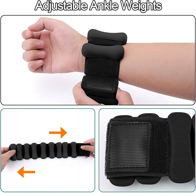 - 【Efficient Workout】-Adjustable ankle weights be used for wrist weights and leg weights, adding comfortable resistance to your daily workout. Perfect for yoga, walking, running, jogging, core training, fitness, gym pool exercise, aerobics, home gym, and home workout. Comes with a mesh bag, you can easily take it wherever you go.