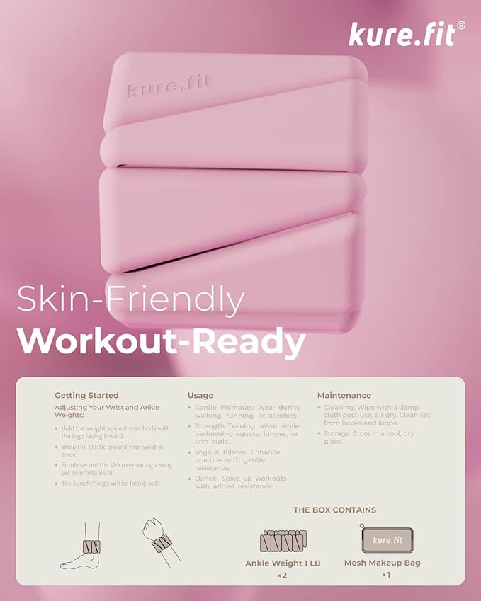 - Style : Welcome to kure.fit, where every piece of our fitness gear is a blend of practical elegance and contemporary design! Experience the epitome of style-conscious modern aesthetics with our Adjustable Wrist & Ankle Weights Set. Designed not just for function but also for fashion, these weights are the ultimate workout accessories for those who value trendsetting style alongside their fitness goals. Fashionable and chic, these wearable bracelets enhance your fitness regimen while showcasing elegant durability and a sleek, functional design. Ideal for a variety of activities—from Yoga and Pilates to running and aerobics—these 1lb pairs are a testament to fashionable fitness. Embrace this essential piece of exercise gear that perfectly marries durability with a chic, contemporary look. Join us at kure.fit and make a statement with every workout. Elevate your fitness experience with our weights that promise not just to meet, but to exceed your expectations in both style and performance. Step into your fitness journey with confidence and grace, sporting the most stylish and practical fitness gear on the market. Welcome to kure.fit, where every piece of our fitness gear is a blend of practical elegance and contemporary design! Experience the epitome of style-conscious modern aesth… See more