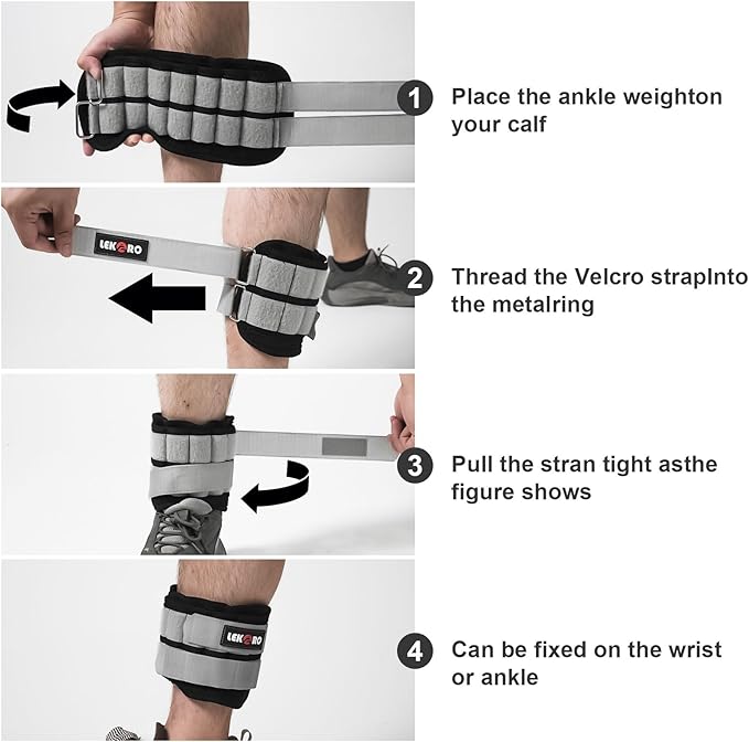 - ADJUSTABLE WEIGHTS: Adjustable strap closure for a snug and secure, customized fit ankle/wrist/arm/leg. The weights are super easy to put on and take off,Reinforced stitching, Sturdy outer trim, And moisture-absorbing material inside, They were soft, Breathable, And comfortable.