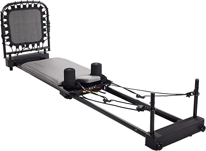 - LARGER CARDIO REBOUNDER: Bounce with the Cardio Rebounder while lying down for a fun, simple way to burn calories and strengthen the pelvic floor. Switch to the padded foot bar to execute traditional Pilates movements.