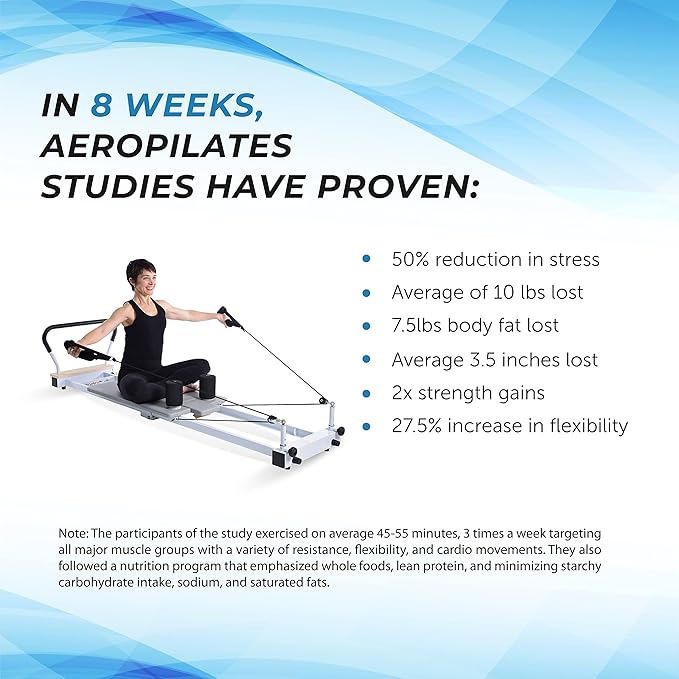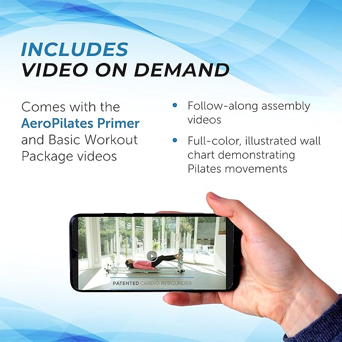 - INCLUDES VIDEOS ON DEMAND - This home gym equipment comes with the AeroPilates Primer and Basic Workout Package videos showing follow-along assembly videos, full-color, illustrated wall chart demonstrating Pilates movements. Providing you with the best workout and fitness experience, get visible results, and track your progress with AeroPilates.