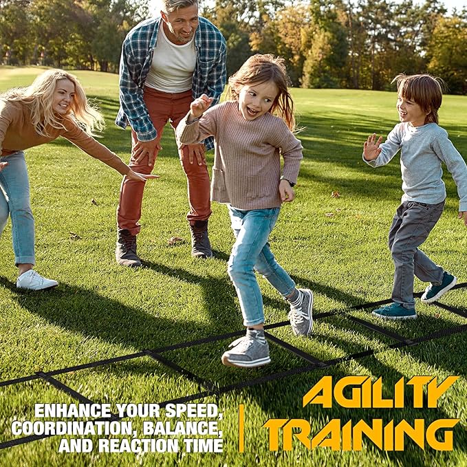 • 【Versatile and Fun】- Perfect for athletes of all levels, our training ladder is ideal for a wide range of sports and activities. From football to tennis, basketball to soccer, this set caters to all enthusiasts. Create engaging obstacle courses for kids and adults alike, making fitness fun for everyone.