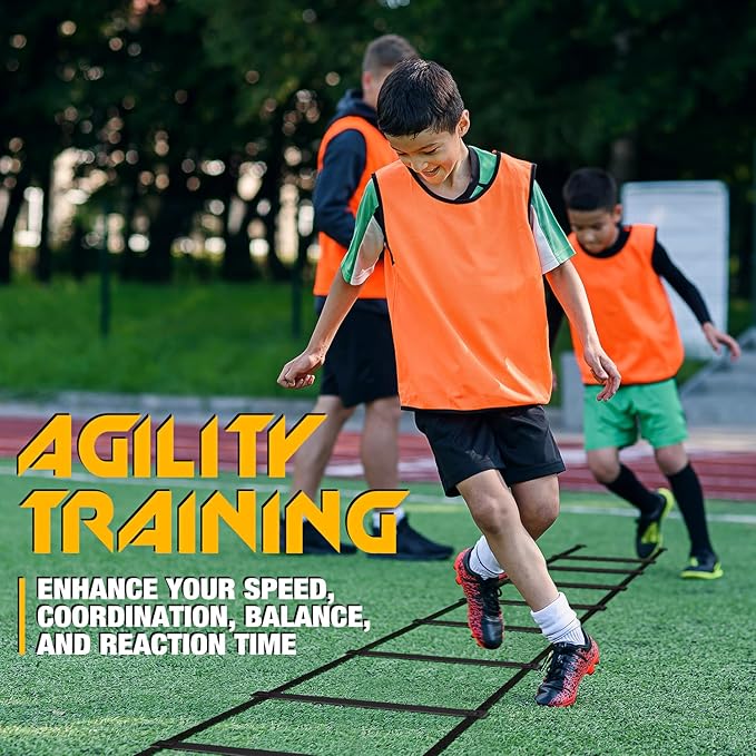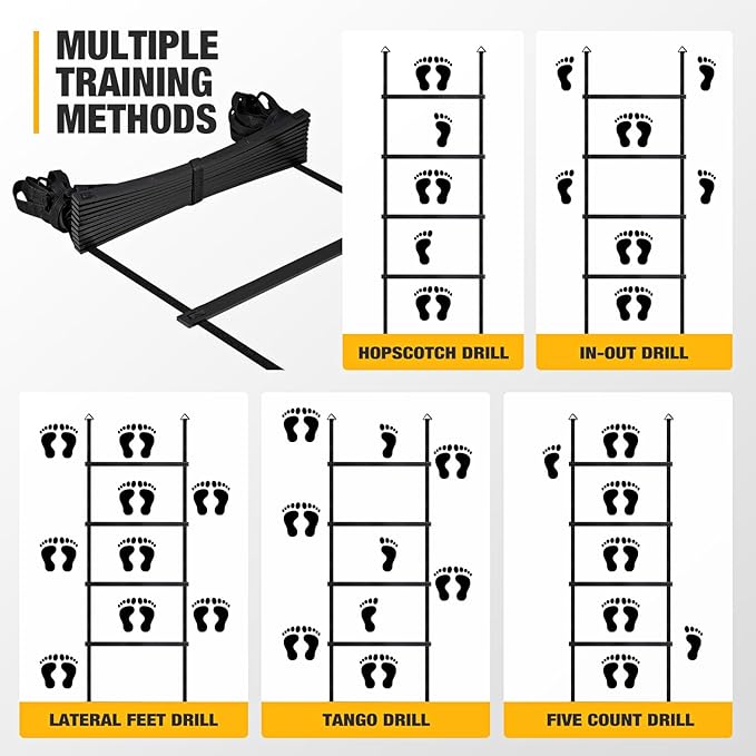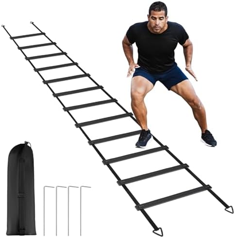 - 【Transform Your Workouts】- Elevate your fitness routine with our all-inclusive soccer ladder set. Designed to push you to new limits, this set includes a 20ft speed ladder with 12 adjustable rungs, 4 steel stakes for stability, and a convenient carry bag for on-the-go training.