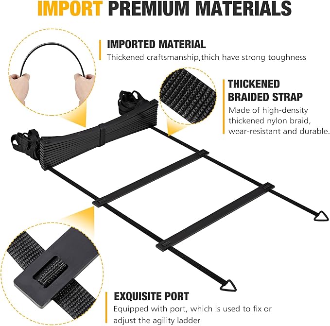 - 【Quality You Can Trust】- Trust in the quality and durability of our Football Ladder to take your training to the next level, crafted from top-quality materials renowned for their durability. The reinforced plastic rungs and sturdy nylon fabric construction guarantee long-lasting performance, offering exceptional resistance to wear, tear, and breakage.