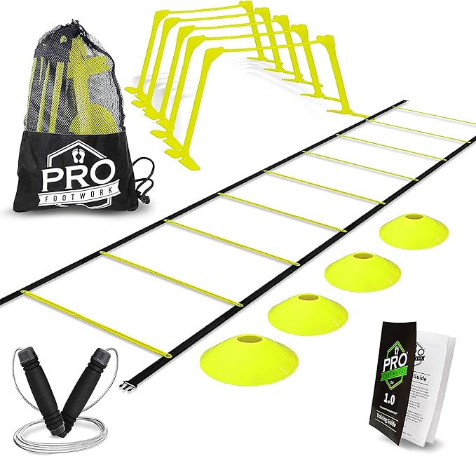 • ✅ COMPLETE SET: Speed or agility training equipment includes adjustable hurdles, footwork ladder (or workout ladder), athletic agility cones, jump rope, and instructional handbook. Our speed agility training set is suitable for beginners and experts