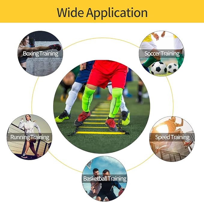 - 【Wide Application】- The agility ladder set makes an excellent gift for your family and friends. It's suitable for kids, adults, athletes, coaches, sports and fitness lovers. And it is very suitable for athletic training, football, basketball, hockey, lacrosse, tennis, badminton, etc.