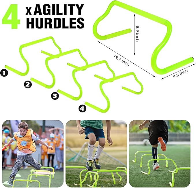 Agility Training Equipment 20ft Agility 4 Hurdles, 12 Soccer