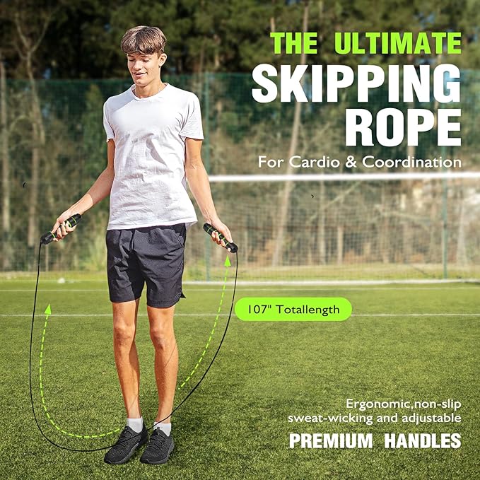 - 【Boost Your Speed and Strength】Experience the power of our Soccer Training Equipment set, which includes a premium jump rope designed to enhance your aerobic endurance, stamina, and speed. Jumping rope offers a full-body workout that not only tones muscles but also improves bone density. By incorporating our jump rope set into your routine, you can target different muscle groups, leading to a stronger and healthier body.