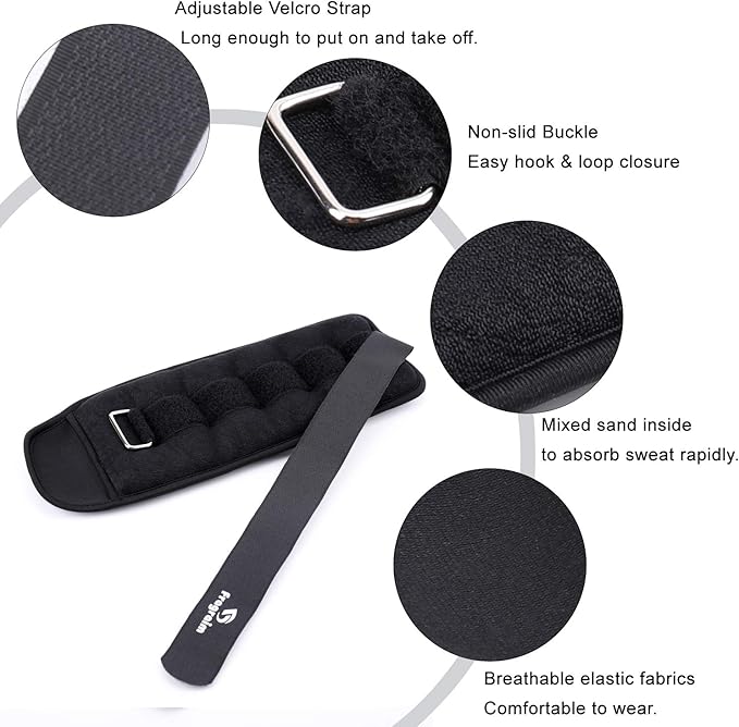 - Snug fit: Adjustable strap closure for a snug and secure, customized fits ankle/wrist/arm/leg. With long enough hook and loop fastener strap, the weights are super easy to put on and take off.