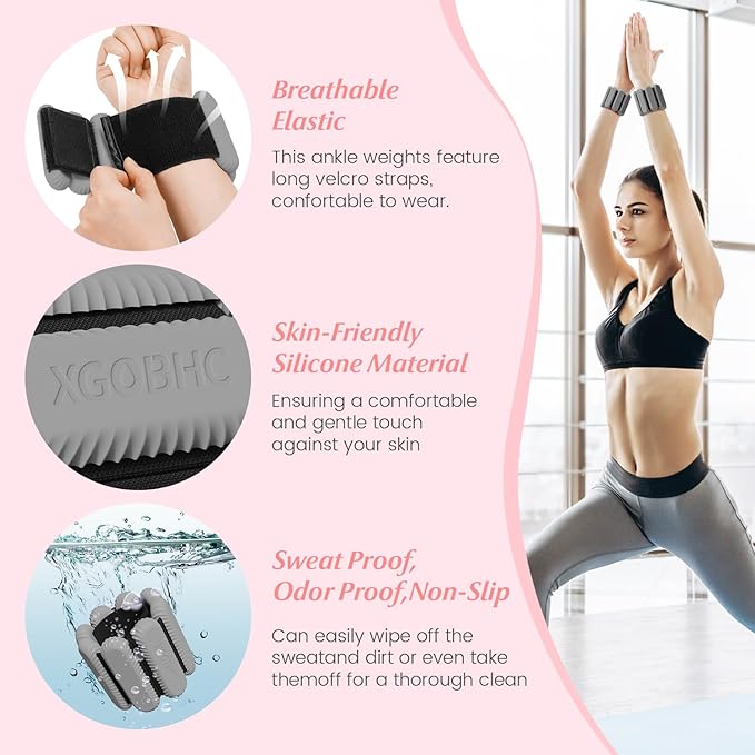 - [Skin-Friendly Silicone Material For Women] Our adjustable ankle weights sets made of soft and comfortable silicone material, sweat proof, odor proof, non-slip, easily clean them after intense workouts; Each strip load can move freely, allowing you to adjust the weight of bracelets, make you more comfortable to enjoy sport.