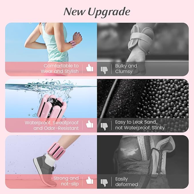 - [Efficient Workout] These legs & arm weights set can enhance muscle resistance and ignite your fat, make your daily workout more challenging and effective. Perfect for yoga, Dance, Ballet, Running, Swimming, aerobics, home gym, and other fitness activities