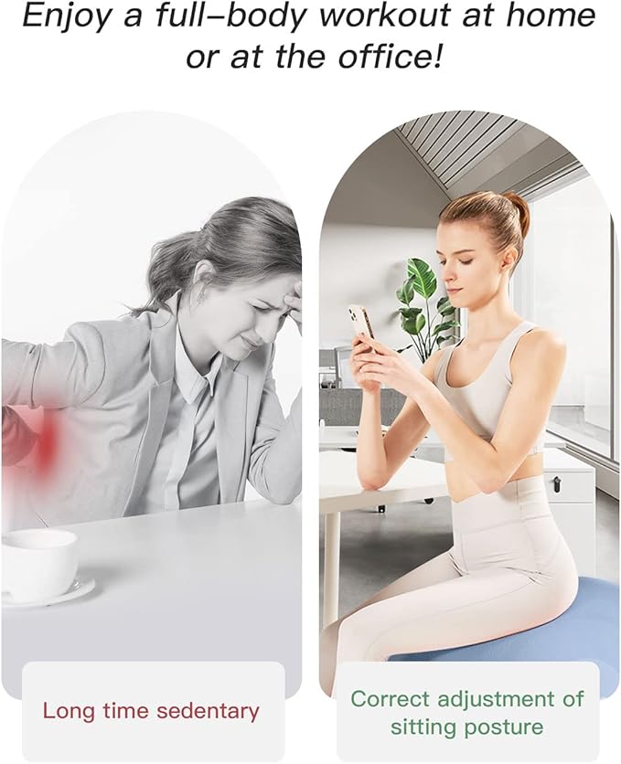 - Our excercise workout ball is a versatile exercise tool suitable for people of all ages Including the elderly and children. It can be used as an office ball, birthing ball, and fitness ball for a variety of exercises, including yoga, balance training, muscle toning, core strengthening, weight loss, back pain relief, and improving balance. Enjoy a full-body workout at home or at the office!