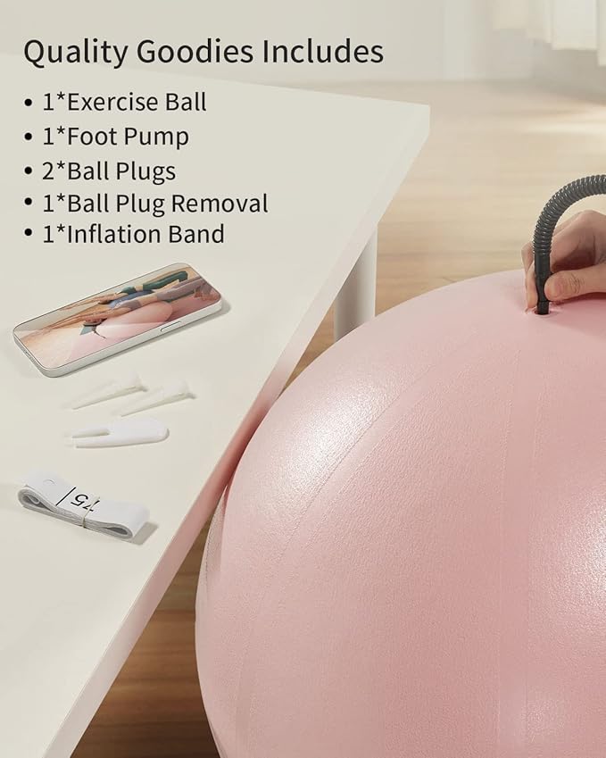 - Looking for a fitness ball that won't leave you huffing and puffing while inflating it? Our swiss ball comes with a foot pump accessory that's as easy to use.No need to worry about low-quality pumps ruining your workout - our pump will get the job done quickly and efficiently. And when it's time to hit the road, just fold it up like a burrito and take it with you. Say goodbye to bulky exercise equipment and hello to the convenience of our yoga ball!