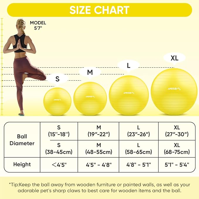 - [SAFE AND ANTI BURST] APEXUP Exercise ball is made of high-quality, eco-friendly PVC material, which meets stringent safety standards. It's non-toxic, odorless, and free from harmful heavy metals. With an anti-burst honeycomb structure, it ensures durability and safety during your workouts.