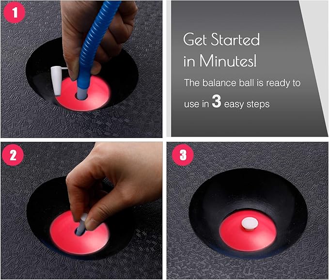 - BALL PUMP INCLUDED: A complete combo, this half-dome stability ball comes with a complimentary foot pump that makes it easy to get fully inflated to 9.8” in under 5 minutes. The ball’s high-quality air valve prevents air leakage and extends service life.