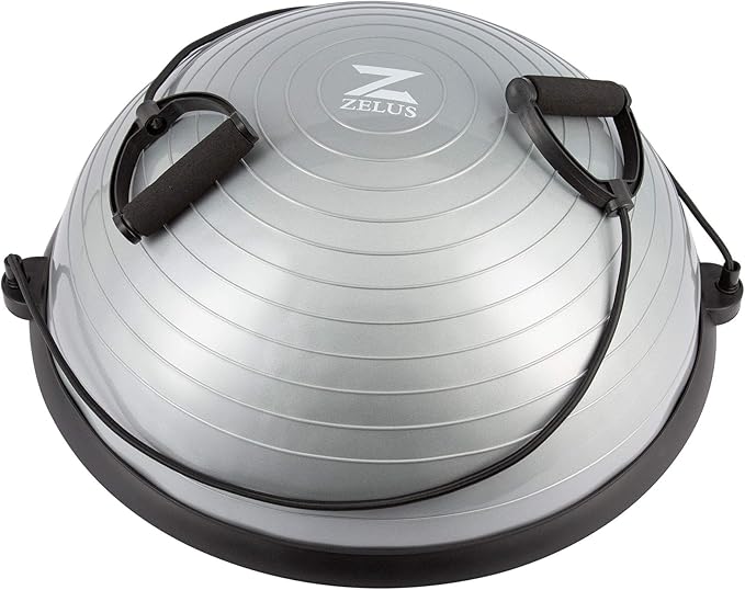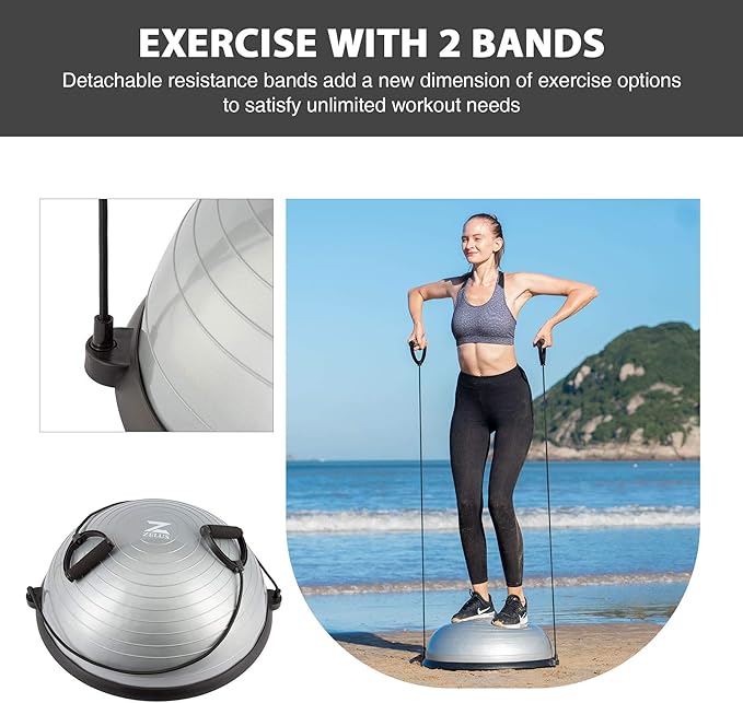 ZELUS Balance Ball Trainer with Resistance Bands and Foot Pump, Inflatable Yoga Ball for Home Gym Workouts, 23 Inch Exercise Half Ball for Balance Training Core Strength Fitness More, 330lb Cap