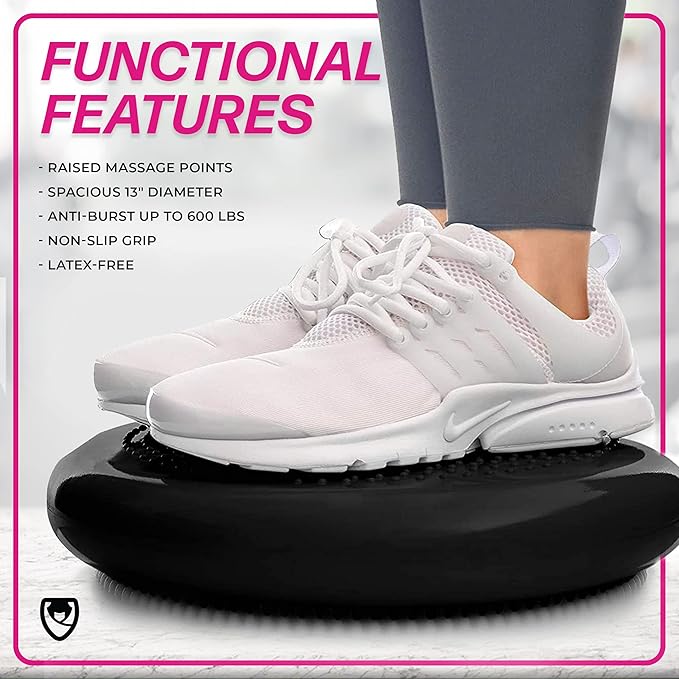 - SUPPORT - Sitting at a desk all day can do a number on the body! Thankfully, this stability disc also doubles as a comfy office chair cushion to provide your lower back some much-needed relief.