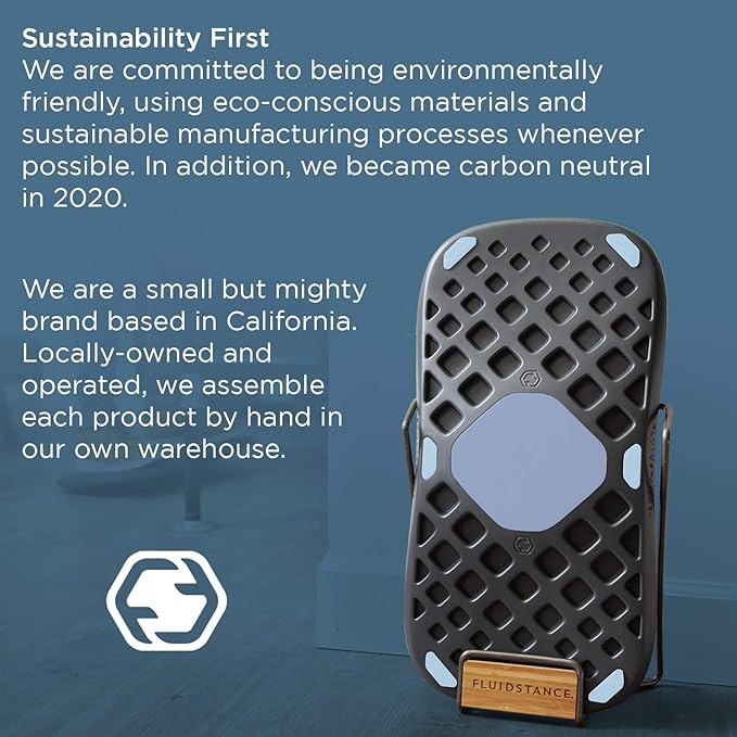 - MADE IN AMERICA: FluidStance is a small but mighty, locally owned and operated brand based in California, USA. From standing desk mats to balance trainers, we assemble each of our one-of-a-kind, premium work desk accessories by hand in our own warehouse.