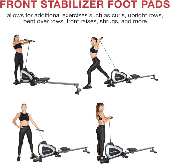 - ULTRA QUIET: This compact row machine has a nylon rowing belt and ball-bearing rollers for smooth strokes, a 250-pound capacity, sliding rail extension, and 14-level dual magnetic tension resistance for an easy or more challenging workout.