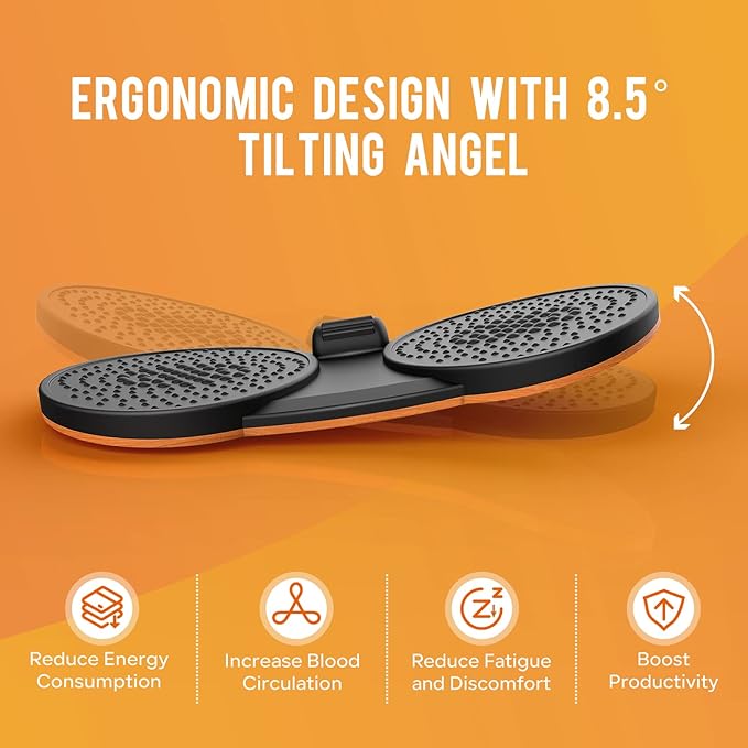 - 【ERGONOMIC DESIGN WITH MAX COMFORT】--The anti-fatigue floor mat adopts 8.5° tilting angle that allows your body to move to comfortable states, It can support your legs & back well with more comfort. Rocking from side to side brings fun to your work while standing in long period. NOTE: Before using, please leave the mat for several days after opening the package.