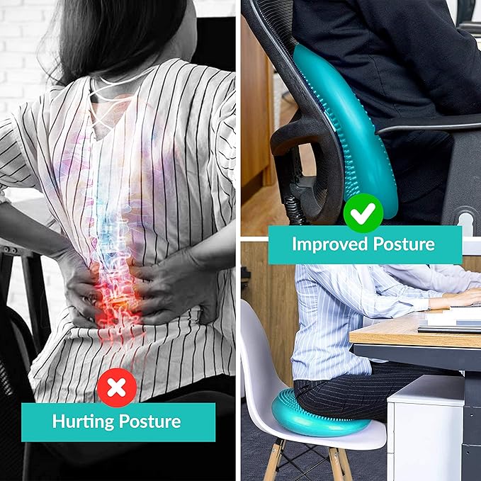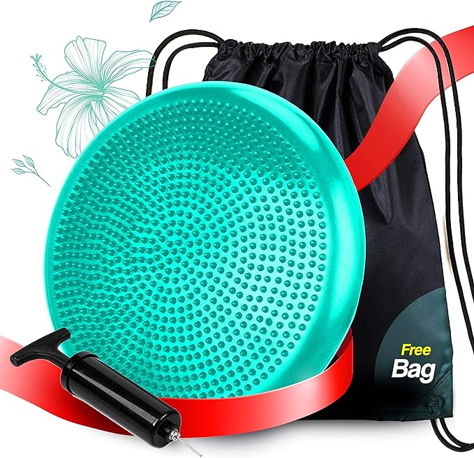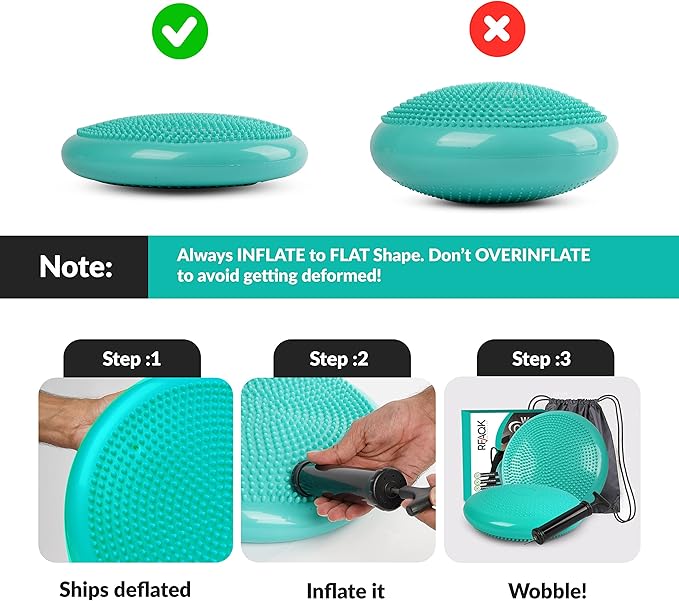 - ☑️【 3 IN 1 CORE TRAINER AND PAIN RELIEVER 】: RFAQK Stability balance Disc bundled up with air pump and polyester bag for easy carrying. RFAQK sensory seat cushion for kids features ☑️ Tailbone Pain Reliever ☑️ Comfortable seating for your butt ☑️ Lower Back and Lumbar Pain Reliever ☑️ Easy to Inflate and deflate ☑️ Sturdy Material for long lasting One side for foot massage and other side for ☑️ posture improvement