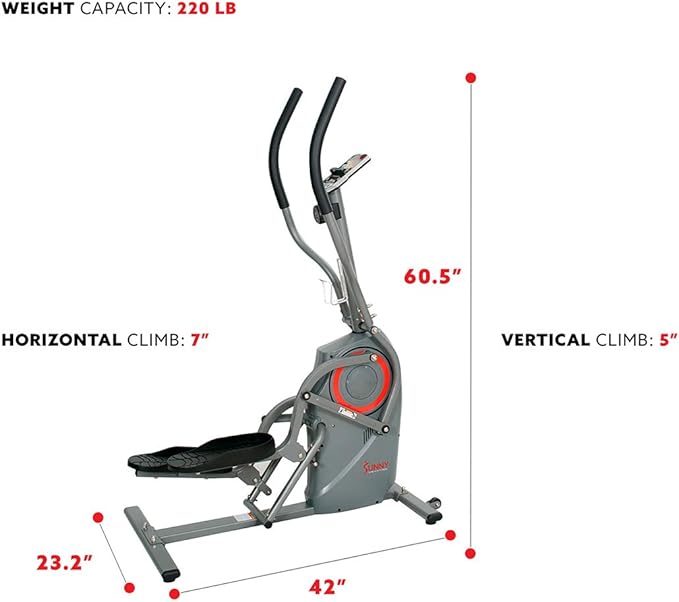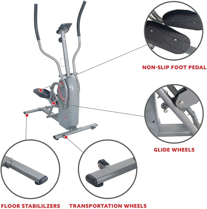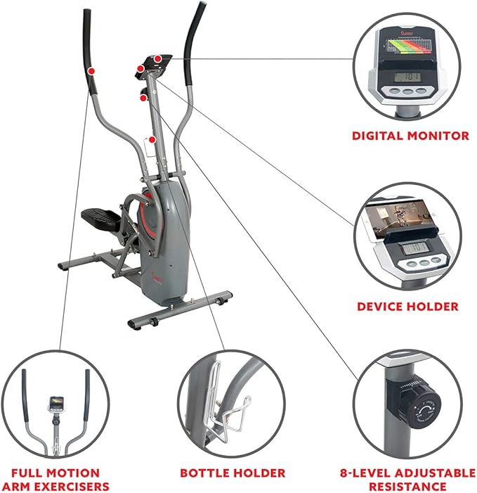 Sunny Health & Fitness Cardio Climber Stepping Elliptical Exercise Machine for Home with 8 Levels of Magnetic Resistance, Performance Monitor, Full Body Workout