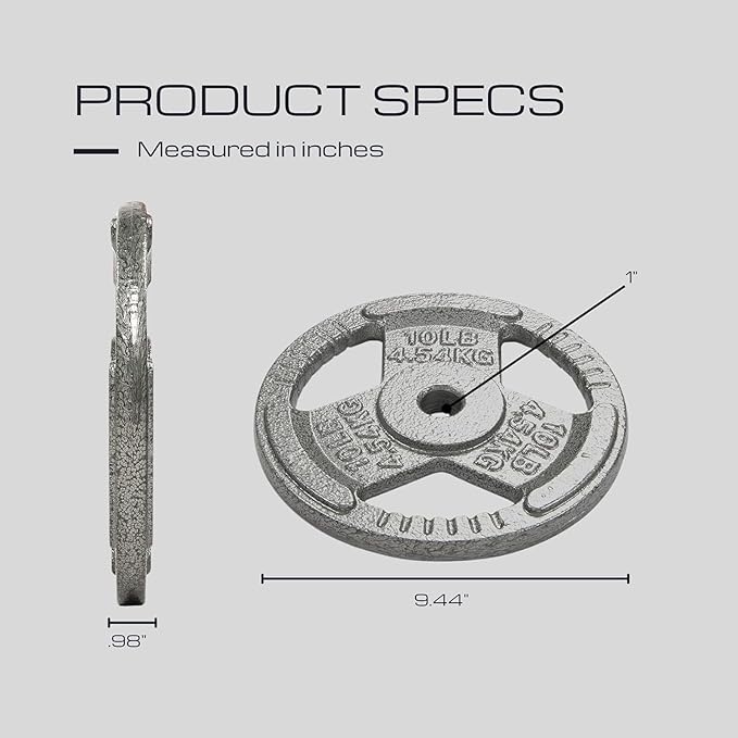 - Purpose - Increase overall health and fitness with our multi-grip 1 inch and 2 inch Cast Iron Weight Plates, which is a must have for any home or garage gym set up. Our Cast Iron strength training plates are coated with enamel to help prevent the potential of corrosion and rust.