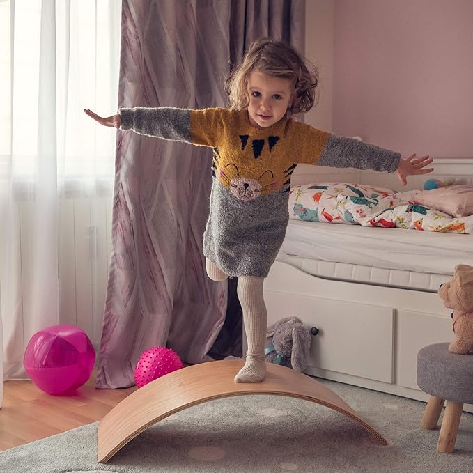 - 💪 SUPERIOR & HIGH QUALITY - The balance board is sized at 35" x 11.8" x 0.7" and made entirely out of NATURAL WOOD giving it increased resistance and holding up to 488 lbs, so hop on the board together with your little one, there's room for both - NON-TOXIC COATING ensures the wood stays well protected as well as your and your children's health - professional craftsmanship not only gives this unique toy a very desirable look but also ensures ALL EDGES ARE CHILD SAFE and free of splinters;