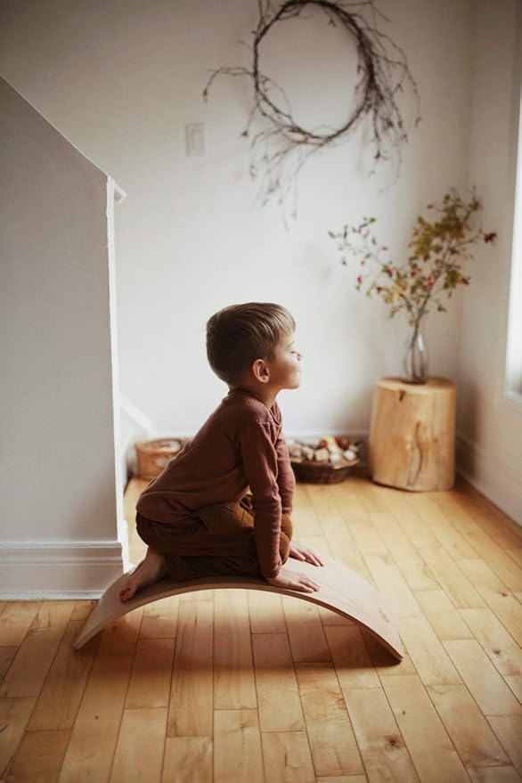 Kinderfeets, Kinderboard, Waldorf Original Wooden Balance Board for Toddlers, Kids, Teens, Adults -Wobble Balance Board - Kids Wooden Toys Learning Toys - Rocker Board Yoga and Exercise