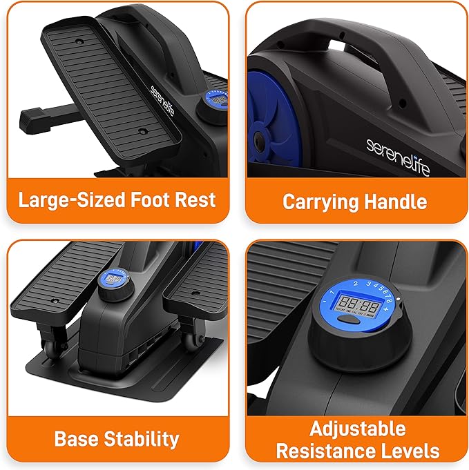 - WHISPER QUIET OPERATION: SereneLife elliptical under desk workout equipment features whisper-quiet operation w/ smooth gliding motion so you can use it anywhere anytime. Helps people with limited mobility looking to revitalize & build muscle strength