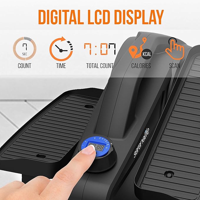 - LCD MONITOR: The mini cycle exercise bike elliptical stepper has an ergonomic design with built-in LCD monitor w/ 4 functions including time, count, calories, & total count so you can track your real-time progress and keep you further motivated
