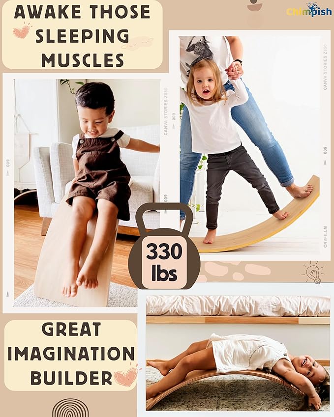 - π π ππππ¦ π π£ππ₯ππππ§ ππππ§ Unlike other wobble boards, that have poor quality, chips, peels, cracks, warped and not smooth. We designed our montessori balance board with high quality solid wood and very strong construction. With CHIMPISH strict quality control measures, our kids balance toys are made with more stability. Having nice thickness and very smooth edges. Over-sized 37 inch for adults, teens, kids or baby balance board.