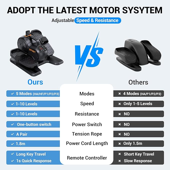 - 【Remote Control】We have equipped this mini electric elliptical with remote control, so you can easily operate it without having to bend over, reducing the burden on your back and allowing you to enjoy your leg workout with ease