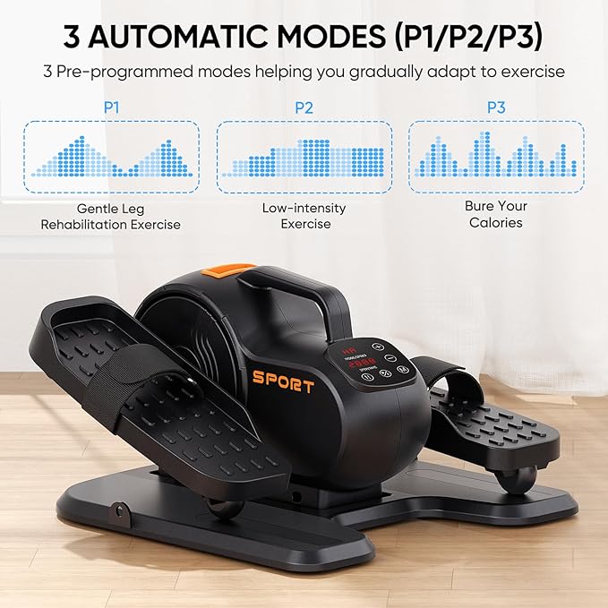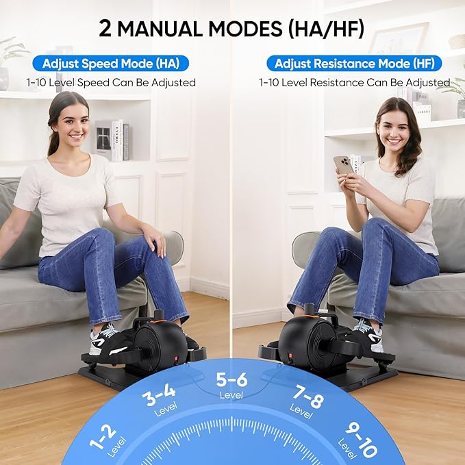 - 【3-IN-1 with 5 Modes】 2 manual modes: HA mode (10 adjustable speeds) and HF mode (10 adjustable resistances). Two manual modes allow you to develop better leg exercises that suit you. 3 automatic modes(P1/P2/P3) Each automatic mode has a pre-set movement speed, resistance, and direction, with no cumbersome operation, press the start button, and you can enjoy a comfortable exercise, very suitable for elderly people with inconvenient operation