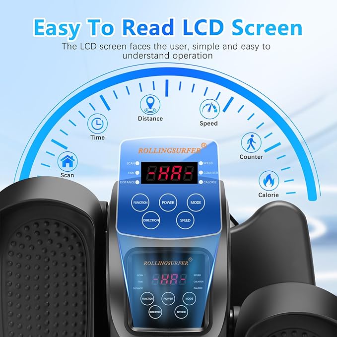 - 【Built-in Display and Remote】The elliptical pedal exerciser has a built-in LCD display, and you can see the time, distance, speed, counters and calories of the exercise on the display in real time. The remote makes exercising easy and comfortable. Real-time monitoring of exercise data and the exercise intensity can be adjusted and controlled as needed. If you receive the remote does not work, please feel free to contact us, we will solve for you.